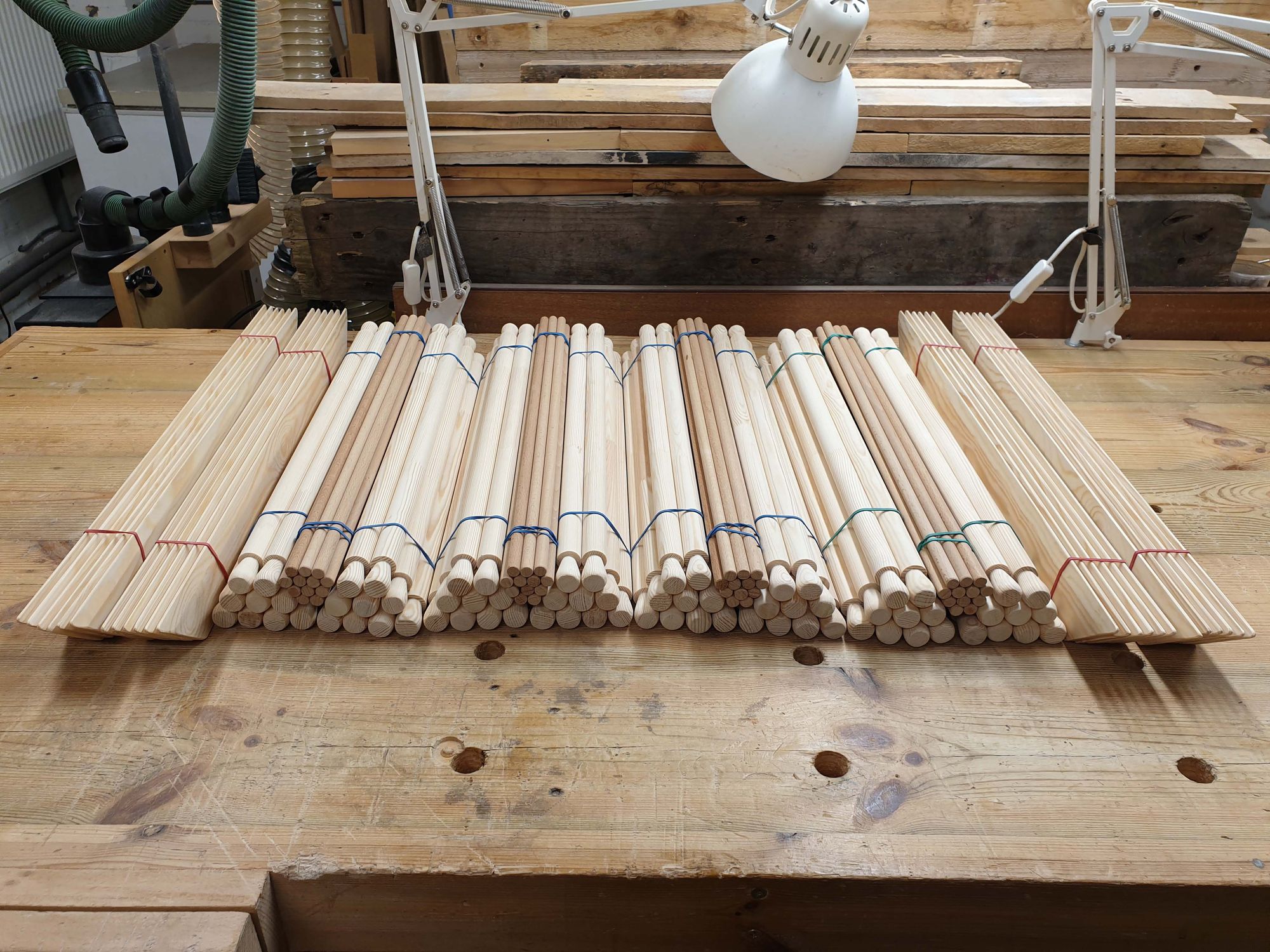 My priority was for the looms to be made locally. So I went on a big search online for some carpenters, and I found the fantastic Gareth who lives in Nottingham! He was so patient with me as I sent through different iterations, and I’m so happy with the result. Here are some pictures of the looms being made in Gareth's workshop. All are made with pine wood and Gareth bonds some of the wood materials together to not create any waste.