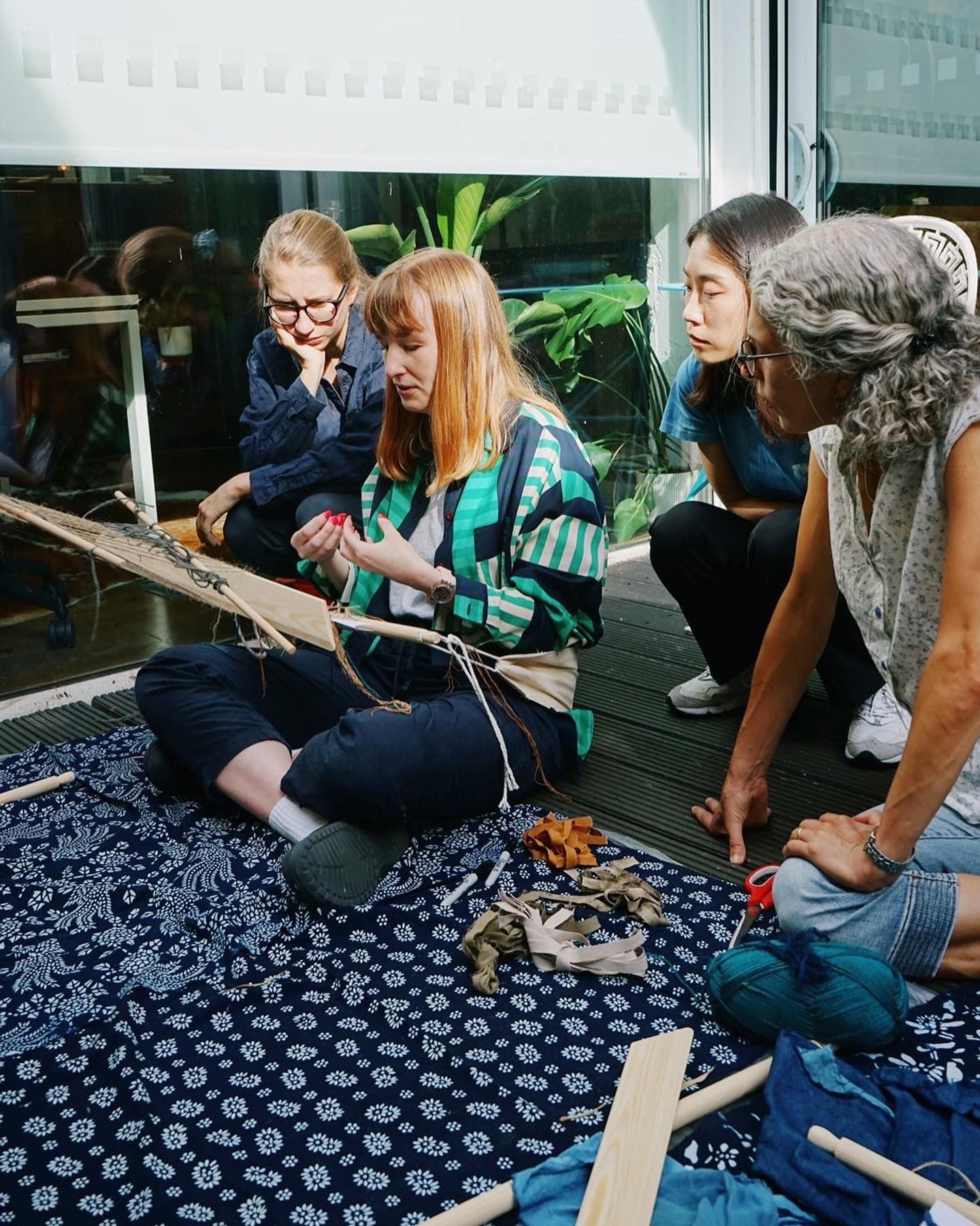 Once you set everything up, hook the back beam onto something sturdy, thread the heddles and sit up with your strap round your back, it suddenly feels neat and right. There's structure and there's a promise of making. If you take it all off, it loses its tension. The loom relies on you making it work.