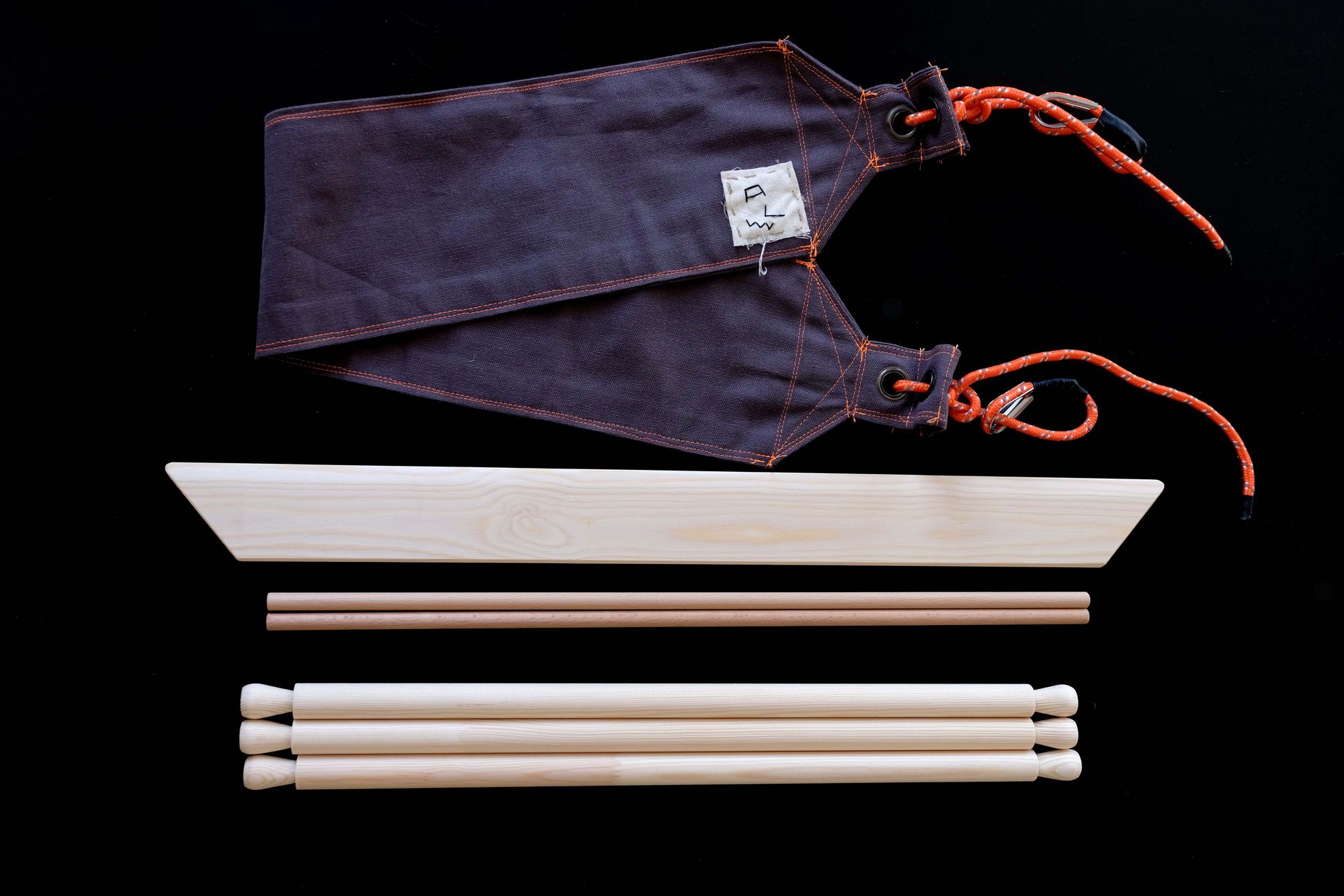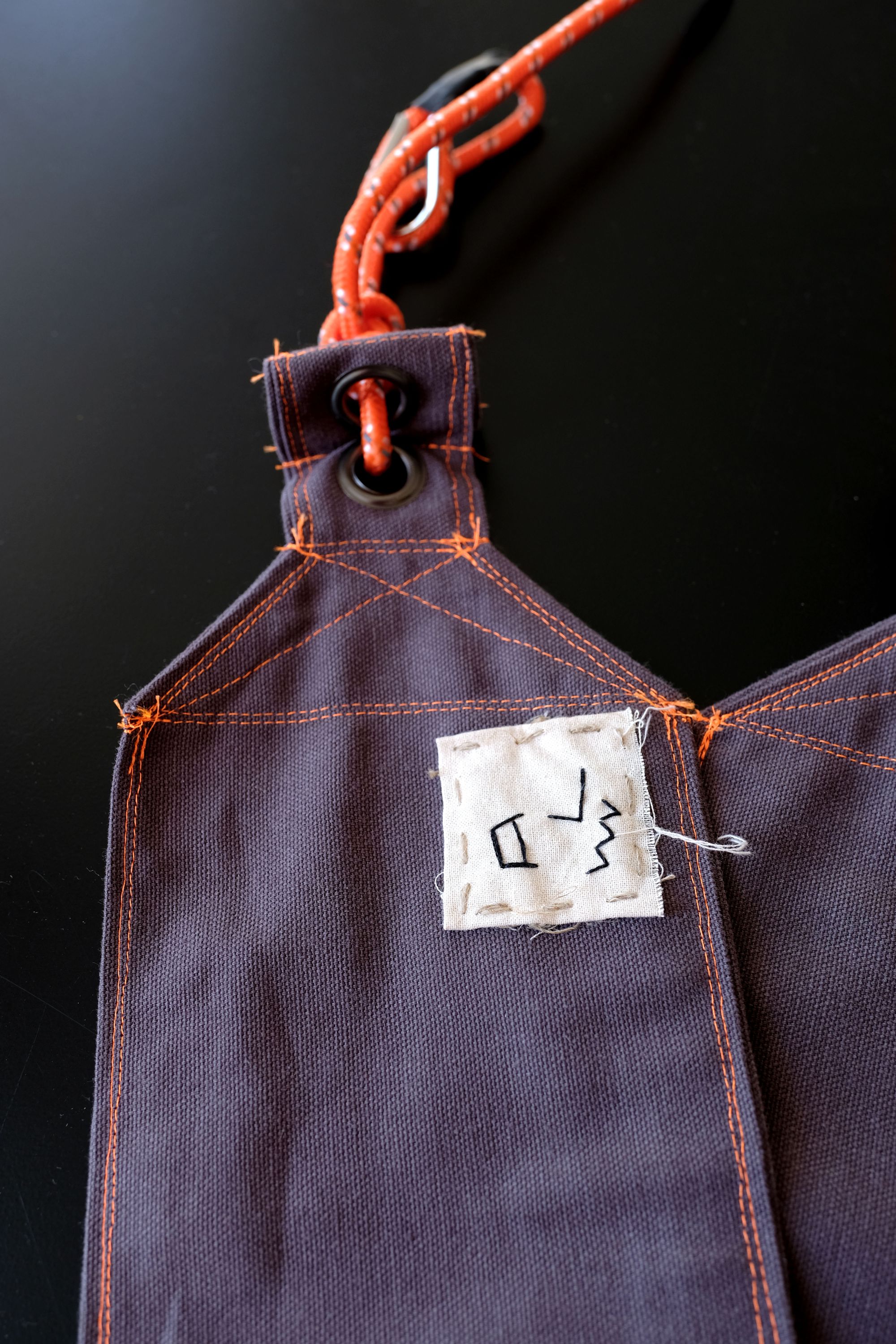 I wanted to add a few details like climbing rope, some eyelets and orange stitching details (I love orange). It makes it look a bit outdoorsy and encourages you to take the loom anywhere with you.