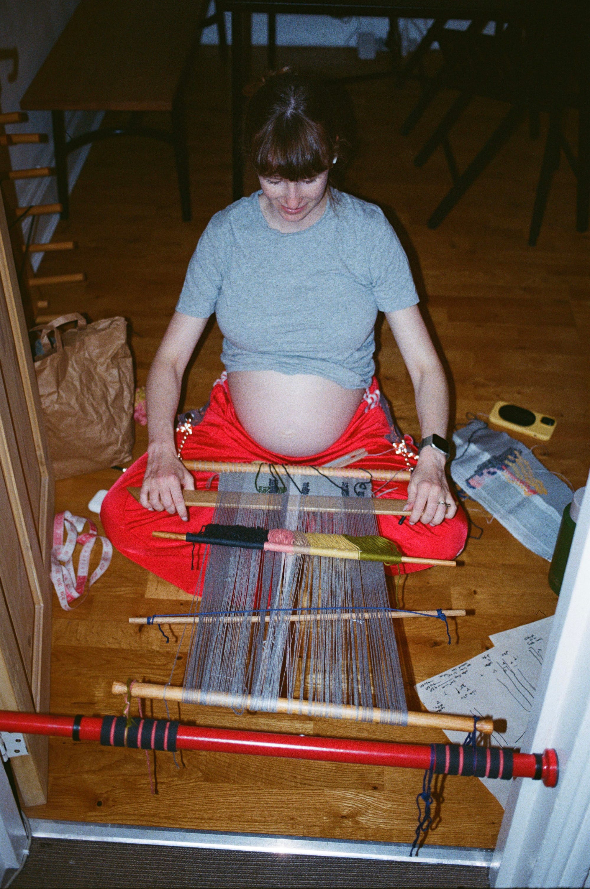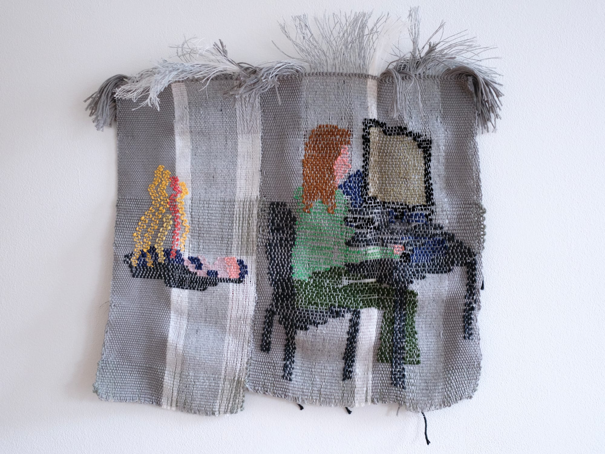 As you can imagine, weaving became quite physically demanding towards the end of my pregnancy. I'm so pleased that I managed to finish the "Baby on fire" piece before Miles arrived. It was intended to be a take on that Sims image of a mother playing computer games while her baby is literally on fire. I wanted it to be a kind of tongue-in-cheek weave, however once finished, I realised that in some ways the piece became a kind of metaphor of that state of mind you're in during the newborn period. Strange things happen to your brain when you're postpartum; I often wake up thinking that I've crushed my baby in my arms when he's actually sound asleep in his cot. I can't even imagine ignoring him, as I'm always checking if he's breathing... People are right, that new parent anxiety can hit you hard!