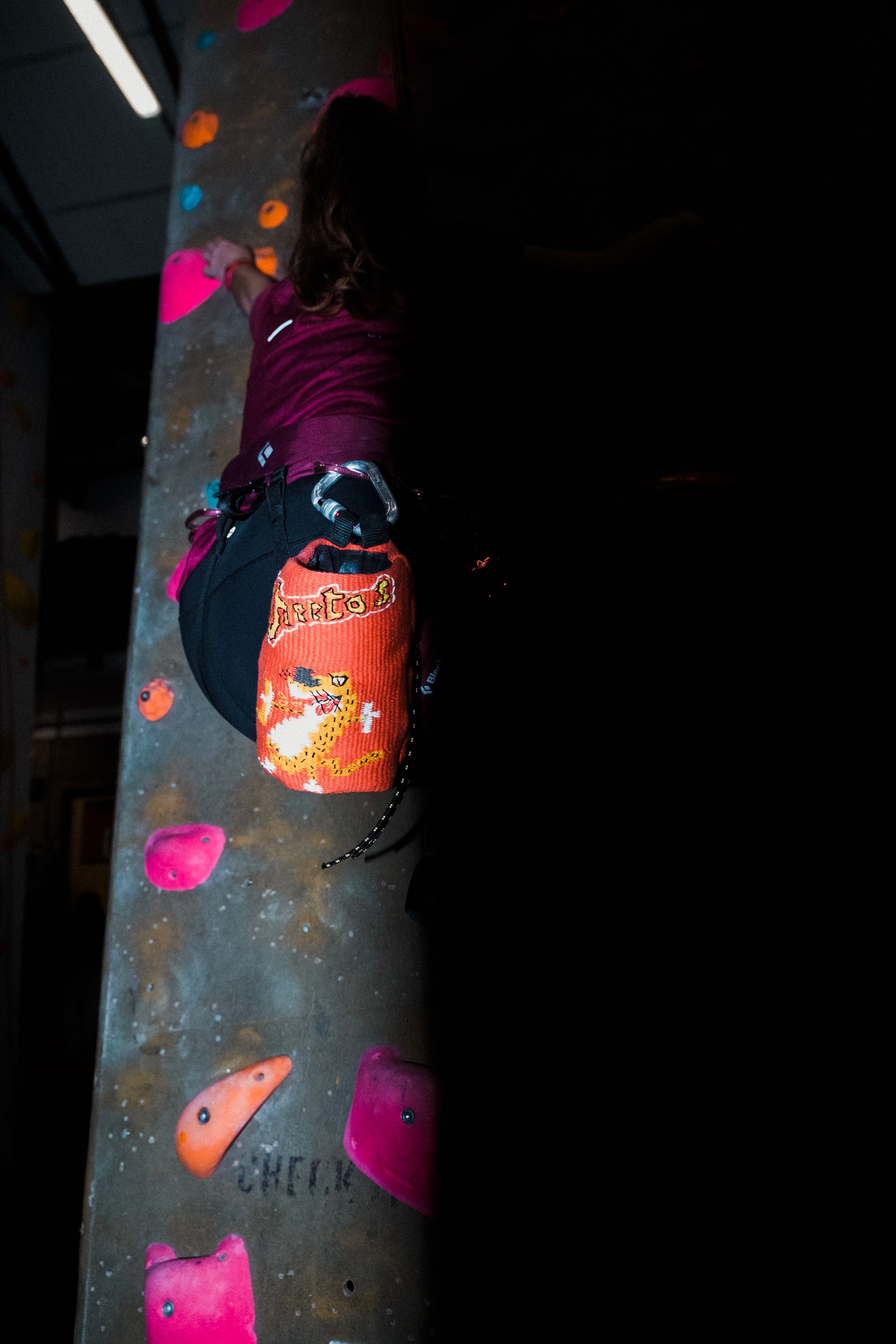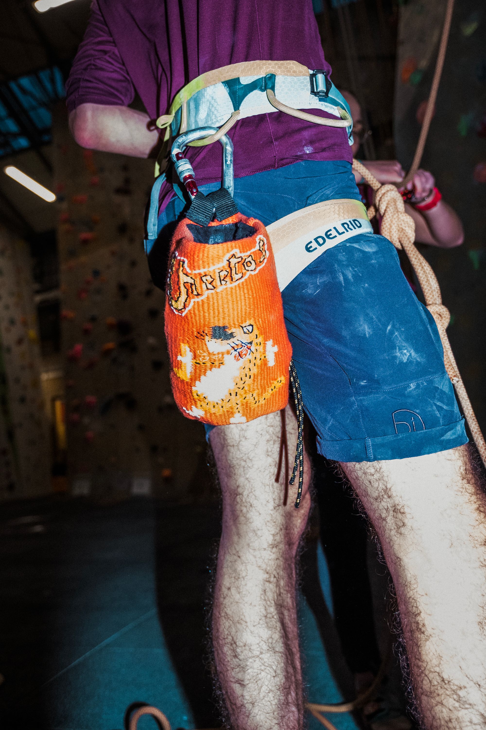 Inspired by the salty snacks we all love, this is my take on the iconic Cheetos bag. You put your hand in expecting a flaming hot treat, but instead you get climbing chalk. In some ways the latter is probably better for when you're climbing.
