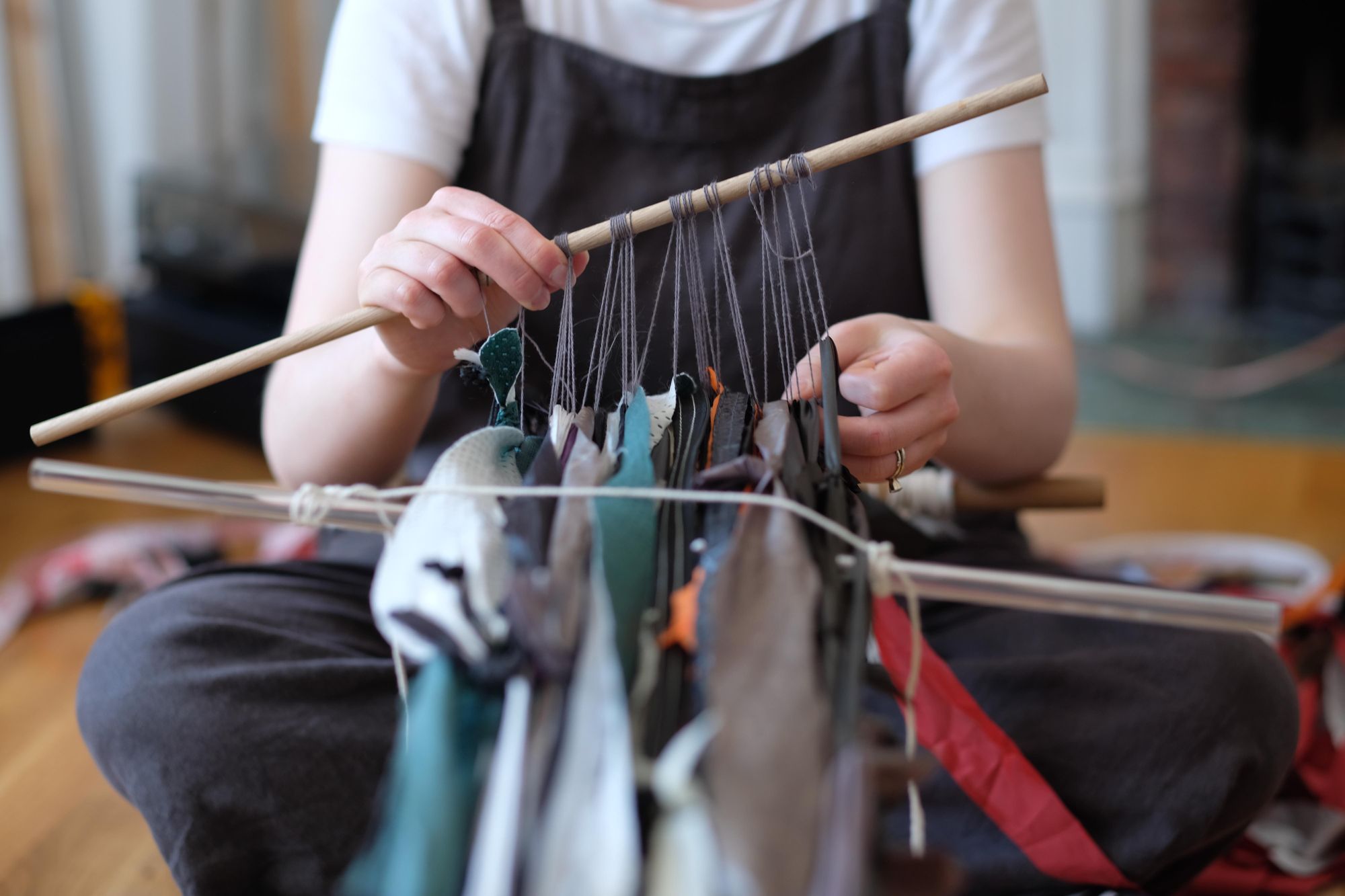 This was such a perfect project for a backstrap loom: the warp strings could be tents scraps within themselves, and because my loom is so adaptable, this actually worked!