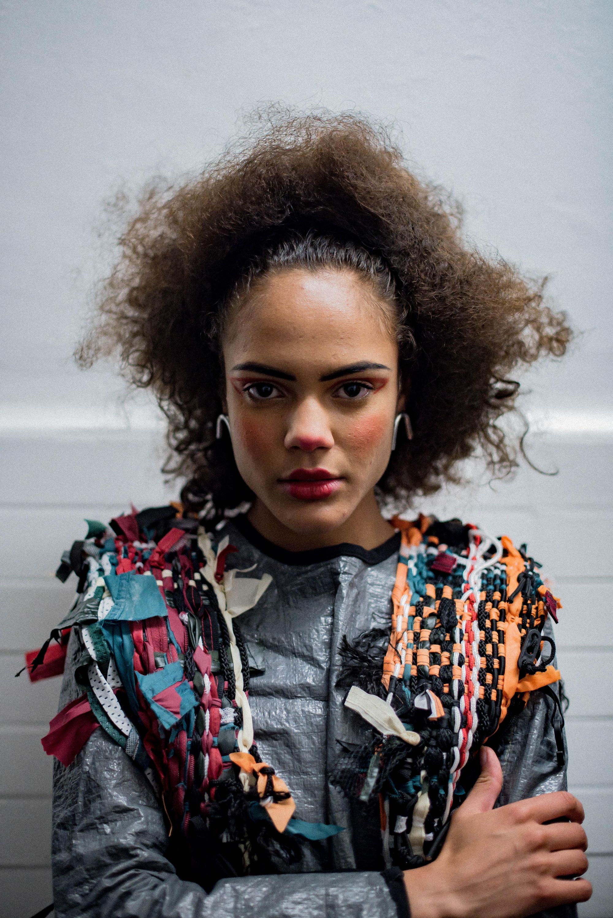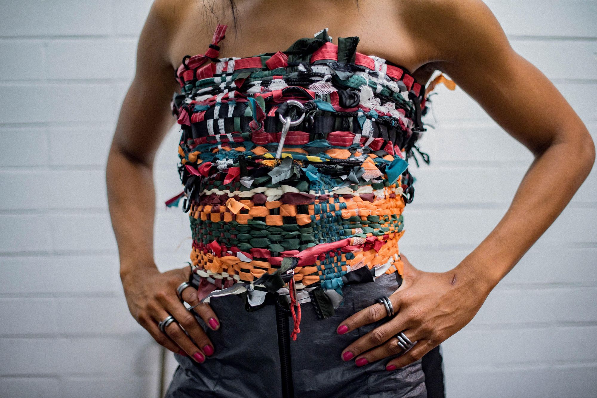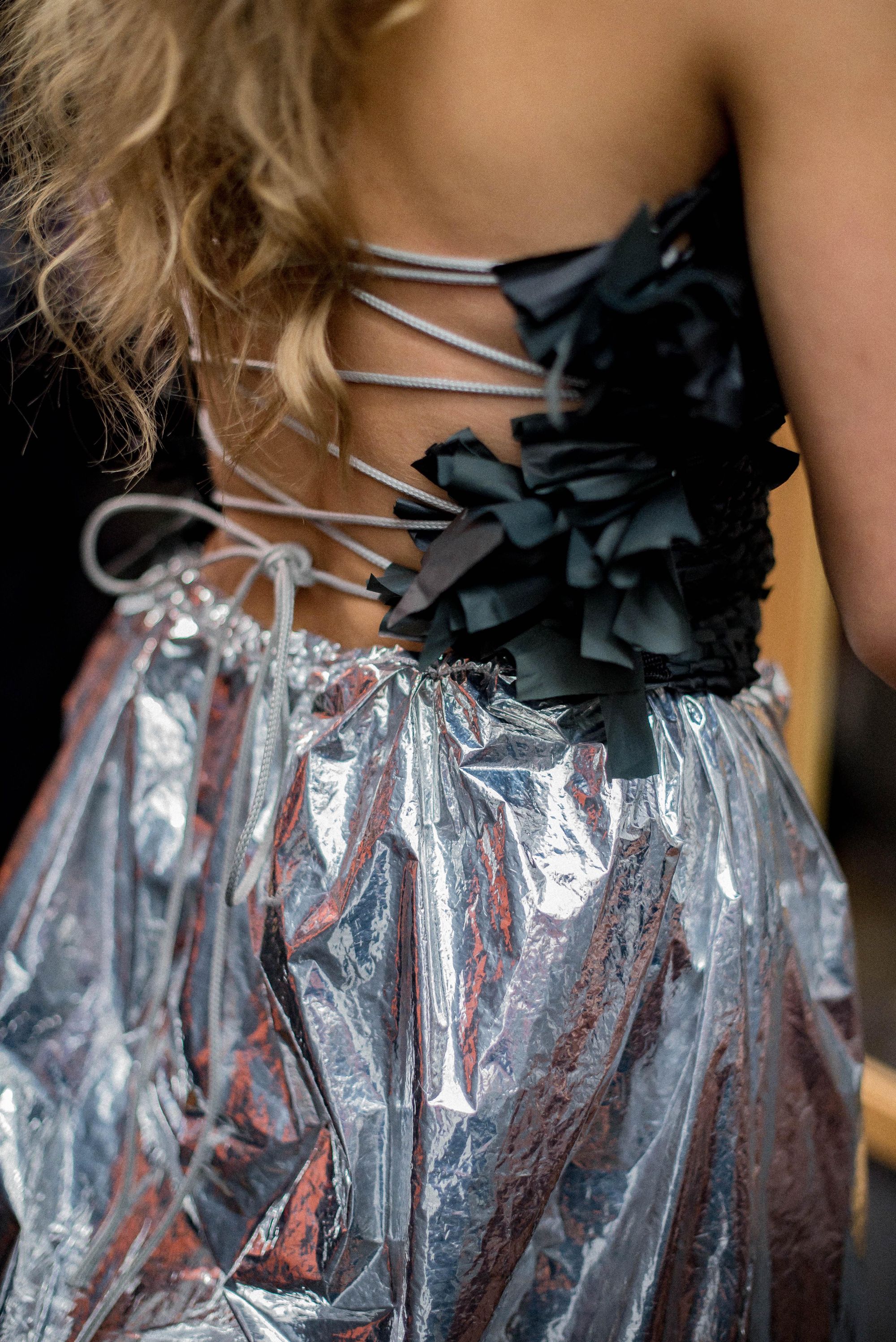 A collaboration with the fashion designer Chloe Baines, "In Tents: The After Party" is a collection dedicated to the abandoned tents leftover from festivals. All the pieces are made entirely out of up-cycled tent materials.
