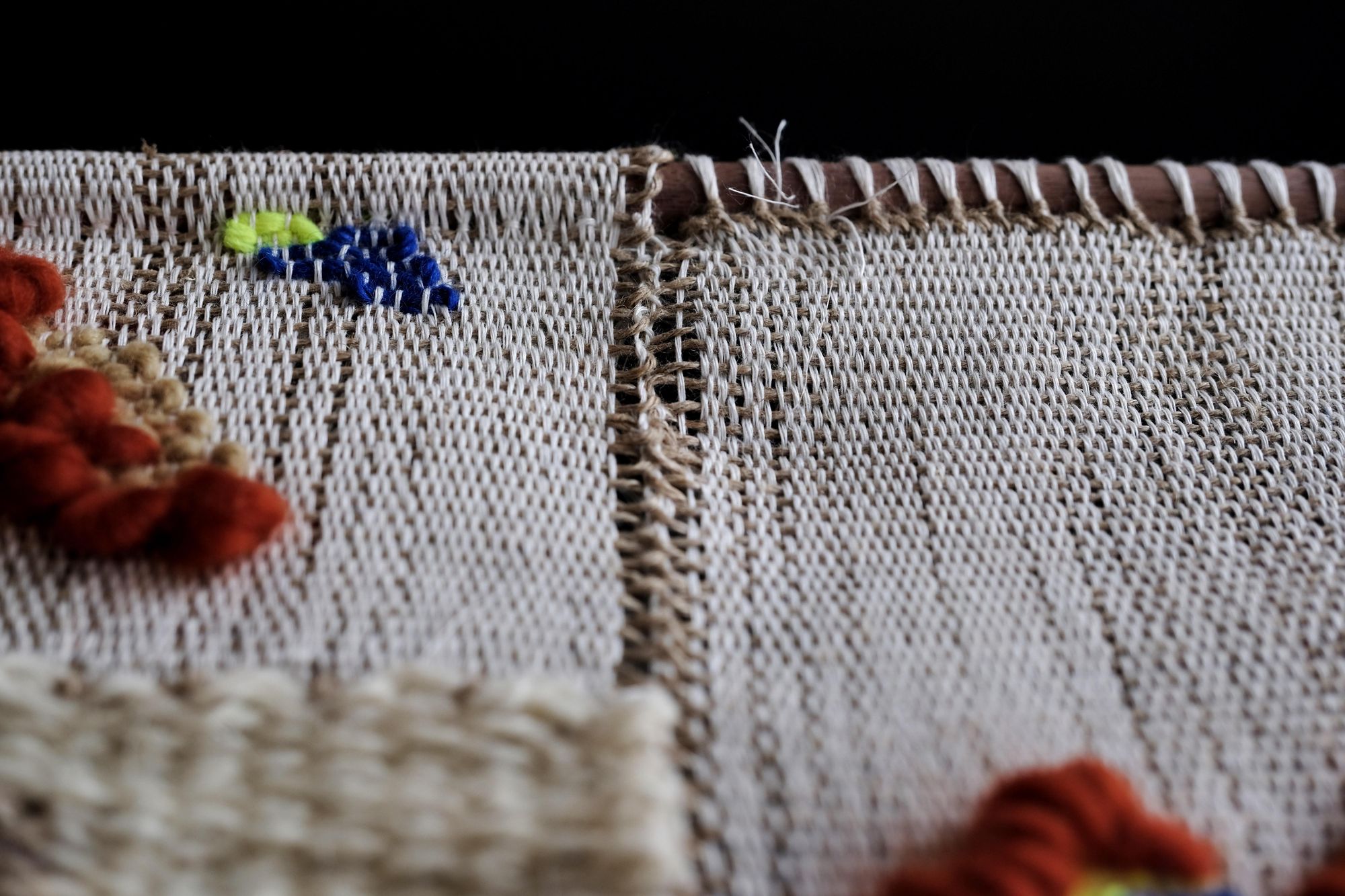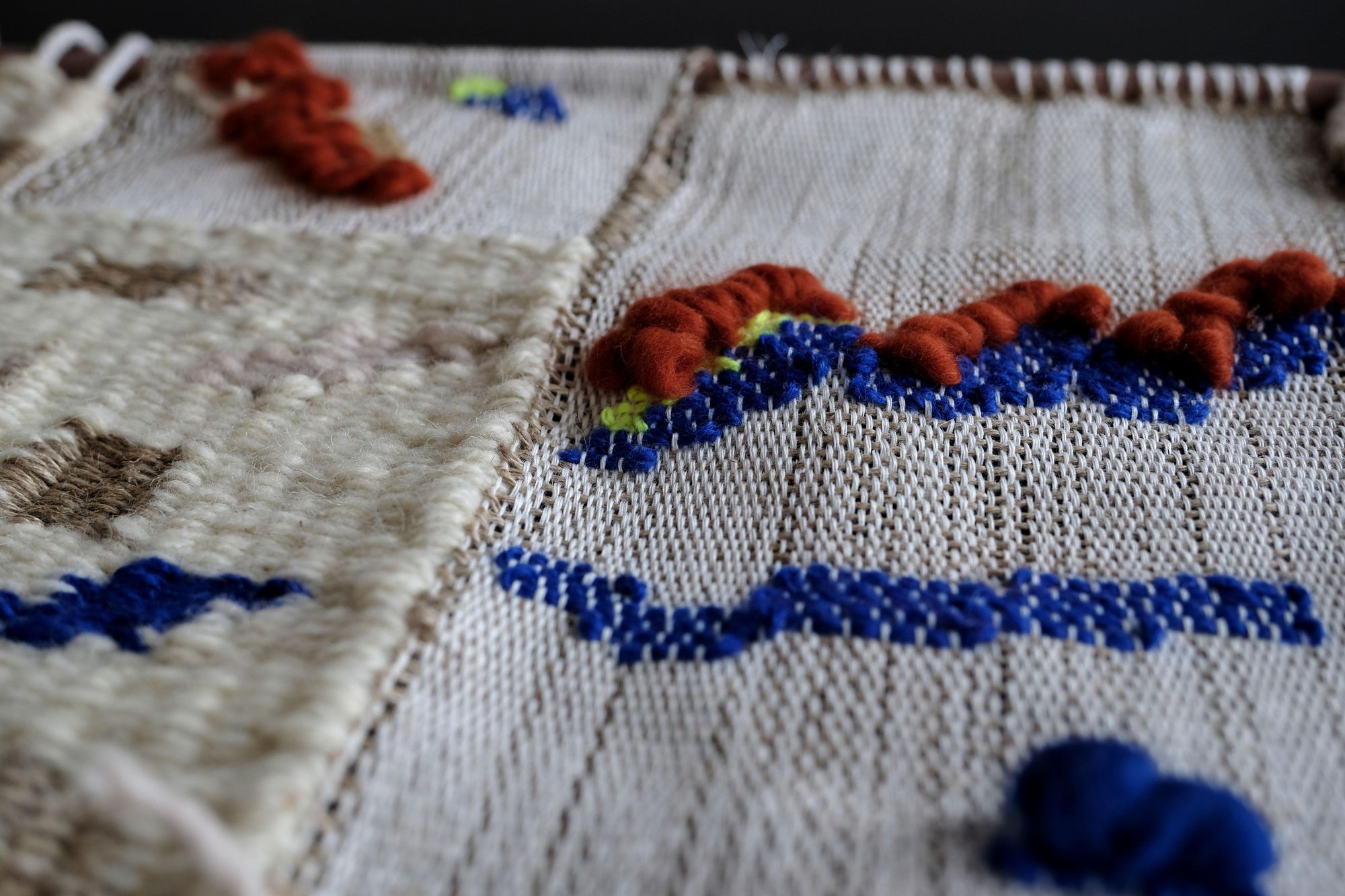 Sci-fi, alien planets or spaces that seem different or perhaps based on a memory have always been an inspiration to me. Distant clouds or outlines of mountains, abstracted to look like objects or characters within their own right. Drawing and weaving like this is often a form of escapism for me.